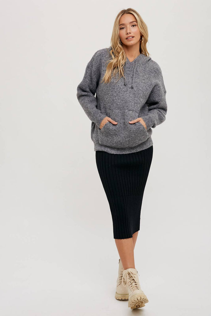 RIBBED KNIT SWEATER HOODIE