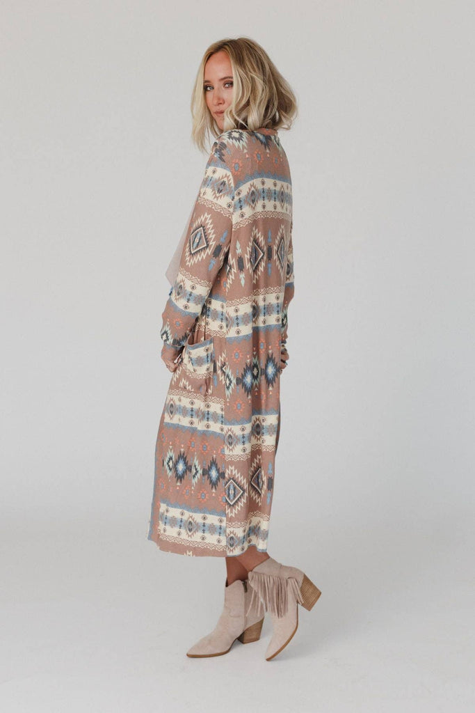 The cutest boho sweater has arrived; the Santa Fe Rose Duster Cardigan!