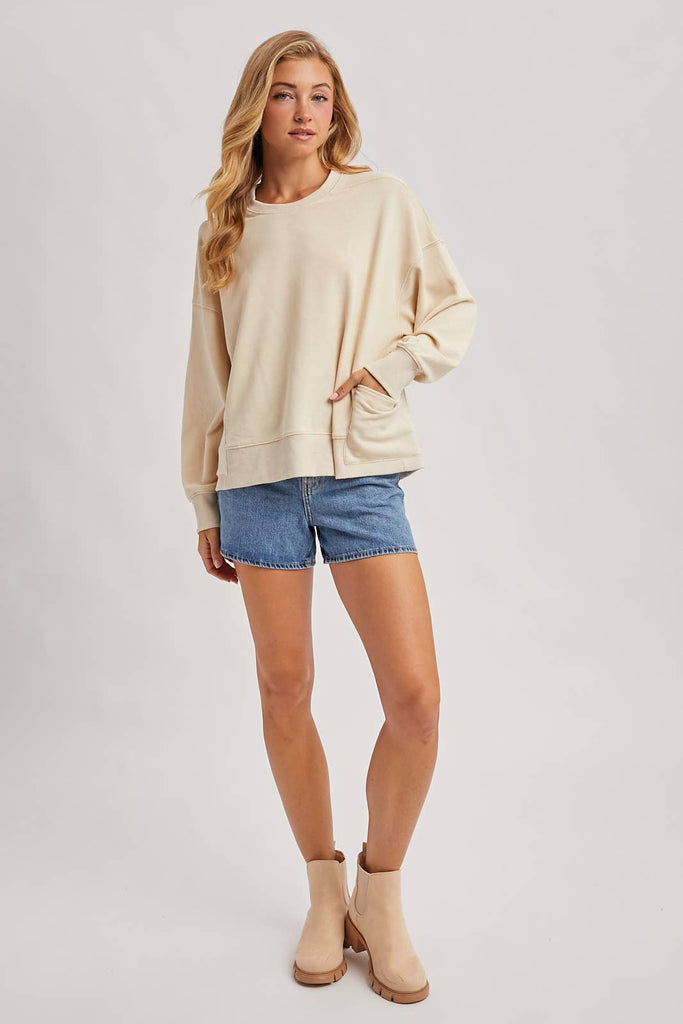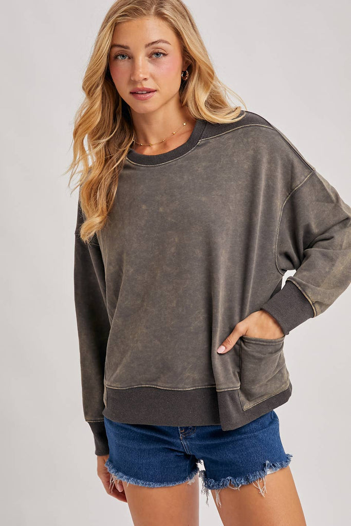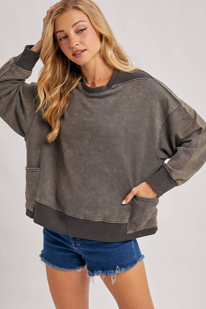 WASHED OVERSIZE KNIT SWEATSHIRT WITH POCKETS